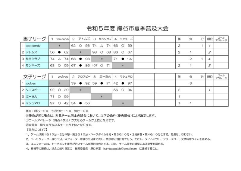 令和5年度、熊谷市バスケットボール連盟で開催する大人の大会第1弾です。